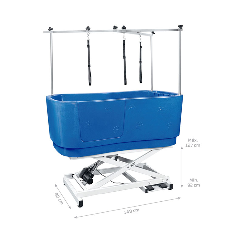 Electric Blue Grooming bainuontzia barne-tabiketa desmuntagarri batez hornituta dago, eta malgutasunez egokitu daiteke maskotaren tamainaren arabera. Animalia txikien bainu-eragiketa errazten du, maskota txikiek bainuontzi handietan izua ez izatea saihesten du eta ur-hondakinak ere murrizten ditu. Horrez gain, bainuontzia barra horizontalaren diseinuarekin hornituta dago, maskotaren posizioa konpondu dezakeena, maskota borrokatzea saihesteko eta apainketa-eragiketetan arreta gehiago jartzeko eta lanaren eraginkortasuna hobetzeko aukera ematen dio.