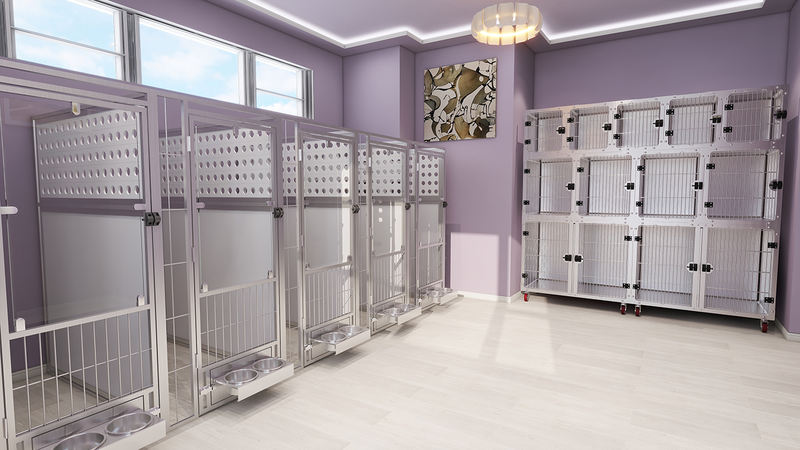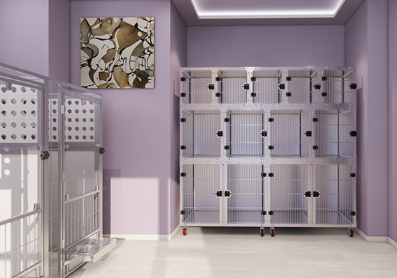 Erabilera anitzeko Animalien Ostatua eta Berrogeiaren Kaiolak hondakin-erretilu bat dauka, kanporantz inklinatutako ertzekin eta zipriztintze-babesgailuekin, gernu-ihesak saihesteko. Oin-euskarri-sareak maiztasun handiko soldadura erabiltzen du, soldadura kendu eta zikinkeria ezabatzeko. Ate lerragarriaren sarraila automatikoki bermatzen da maskoten ihesa saihesteko, modelo jakin batzuek blokeo bikoitzeko ate magnetiko sistema bat daukate.