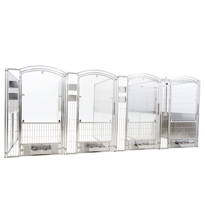 Erabilera anitzeko animalientzako harrera eta berrogei kaiola-k beira sendoa eta segurtasun-tenplatua erabiltzen du, bizitza oso luzea bermatzeko, animalien marradurak guztiz saihesten dituen bitartean. Guztiz soldatutako kaiolaren gorputzak ertz biribilduak ditu, erraz garbitzeko eta higienea mantentzeko. Kaiolen unitateak lehendik dauden leihoen aurrean zuzenean jar daitezke, eta bereziki egokiak dira txakurkumeen salmenta eta adopzio guneetarako.